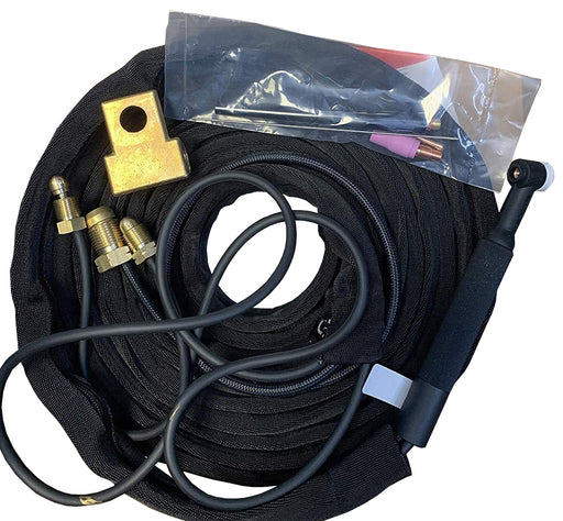 The "25' WP-20 Water Cooled TIG Torch Package for Miller Dynasty 200 Syncrowave 250DX" is a specialized welding accessory used in TIG (Tungsten Ine...