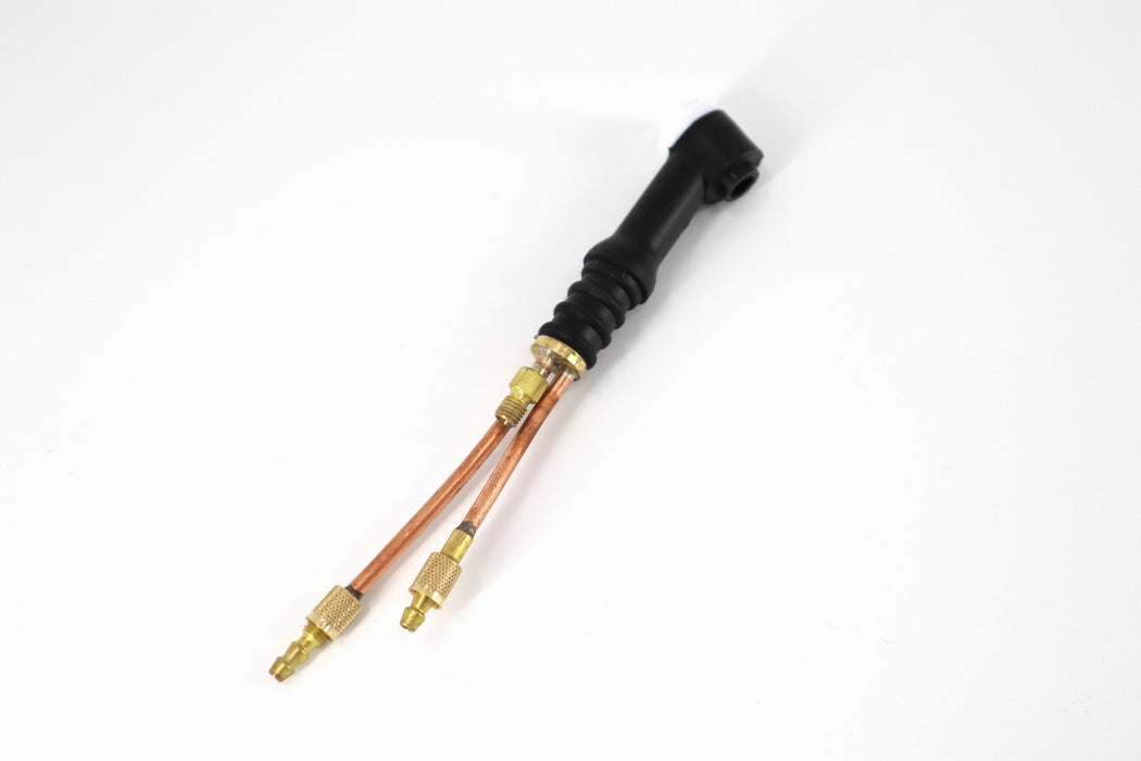 Solid Torch Body: The term "solid torch body" indicates that this component is a part of the TIG welding torch and is typically made from a solid material. The torch body is an essential part of the TIG torch, as it houses components like the collet, collet body, tungsten electrode, and gas nozzle. The torch body's design can vary, and a "solid" torch body implies that it does not have any internal passages for water or cooling fluid, as some TIG torches are water-cooled.