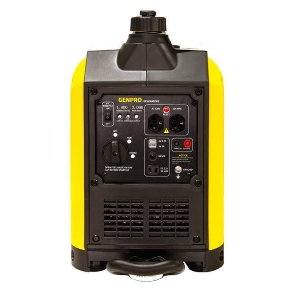 Experience power and portability with the Genpro LL2000iS, a 2000-watt inverter generator designed for camping adventures, outdoor events, or reliable emergency backup at home. With 2,000 peak watts and 1,800 running watts, this generator is your go-to companion.